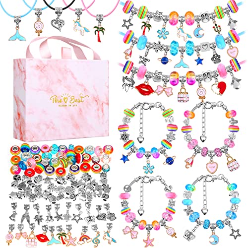 Caffox Tillverkningssats för berlocker & armband, 102 st, halsbandssats för smyckestillverkning, gör-det-själv, flickor, smycken, med platta pärlor, konst-/hantverksset som armband, för flickor & jul