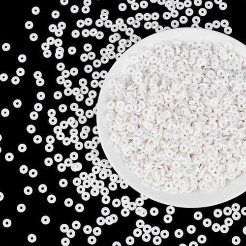 4000 st vita Heishi pärlor, Lre Co. flingpärlor för armband, platta handgjorda pärlor 6 mm distanspärlor, polymerfröpärlor för smycken DIY halsband ringarmband örhängen
