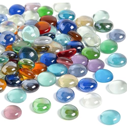 HAKACC Glasnuggets 900 g flerfärgade platta pärlor dekorativa stenar flerfärgade