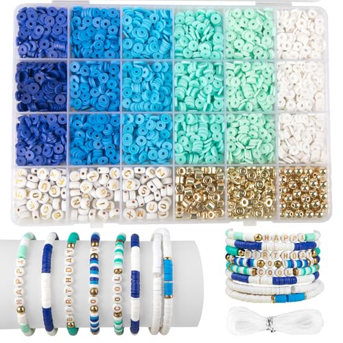 yumcute Kit för armbandstillverkning av lerpärlor, 3 000 st kit för smyckestillverkning, 6 färger lerpärlor kit, blå vänskapsarmband, platta pärlor för att göra armband, halsband och örhängen