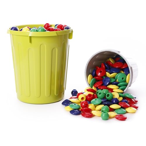 Italveneta Didattica Platta pärlor 200 stycken, pedagogiskt stöd för motorkoordination och minne, sorterade i olika färger, inklusive papperskorg – för manuella aktiviteter och kreativt spel