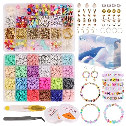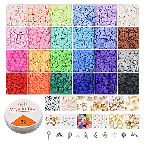 BELICOO 10000 st lerpärlor för armbandstillverkningskit, 24 färger lerpärlor för smyckestillverkning, kit av polymerlera för armband, halsband, örhängen, gör-det-själv, hantverkslera platta pärlor för