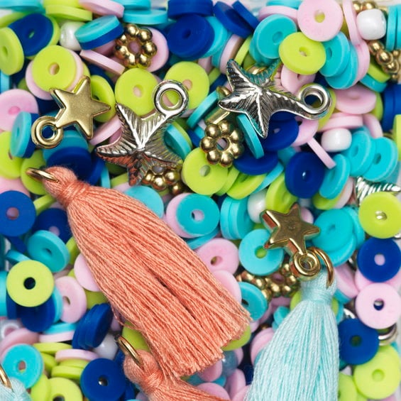 Baker Ross FN220 Platta färgglada pärlor - 3600 st, polymerpärlor för smyckestillverkning, tillbehör för barn, vänskapsarmband