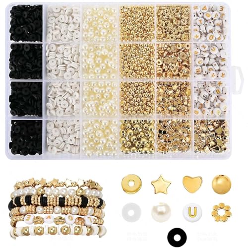 Kit med lerpärlor för armbandstillverkning, 4 800 st platta pärlor av polymerlera, set med påfyllningsberlocker, smyckestillverkningspaket, vita bokstäver, smiley, heishi-pärlor, armbandspaket för