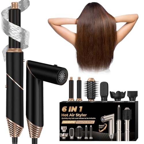 Airstyler 6 IN 1, hopfällbar varmluftsborste med joner, hårstyler, hårfön, hårtork för snabbtorkande, multihårstylare med automatisk luftlocktång, plattång borste och volymborste