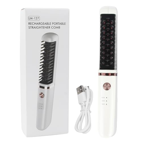 Trådlös Plattång för Hårborste Anti-skållning Kam Multifunktionell Hårförband Skäggplattång - 3 Nivåer Justerbar Temperatur, USB-uppladdningsbar, 30W