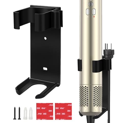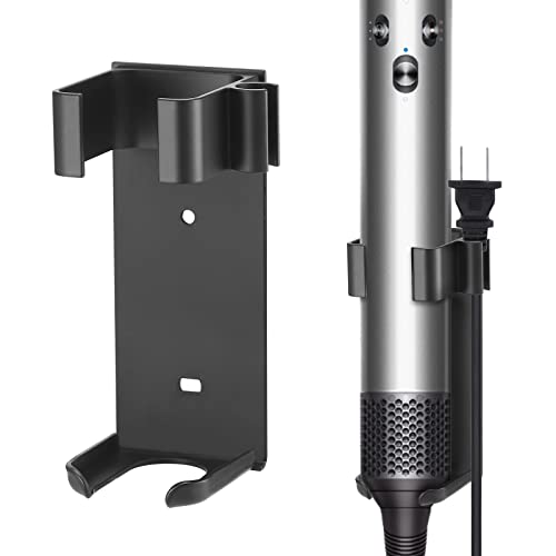 Moqing Väggfäste för Dyson Airwrap, metallhållare arrangör för plattjärn, plattborste, hårplattare, olika lockiga hårpinnar, tål höga temperaturer, aluminium (svart)