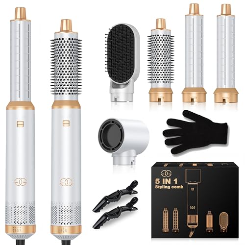 Airstyler 5-i-1 locktång, Golden Goods hårstyler set med varmluftsborste, plattborste, 1000W hårtork, ge volym, räta ut, locka och föna, rundborstfön