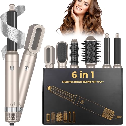 UKLISS Airstyler Hårtork 6 IN 1, elektriska borstar och blåsborstar, 1000w uppvärmd borste, hårfön curler, uppvärmd plattborste, presentpaket för kvinnor som torkar, lockar