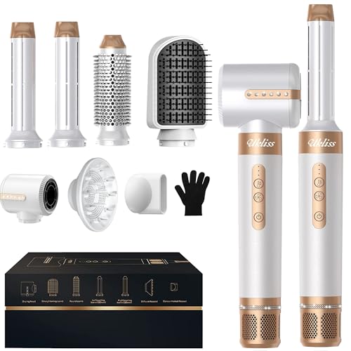 Airstyler 7-i-1 locktång, Golden Goods hårstyling set med varmluftsborste, plattborste, hårtork, ge håret volym, räta ut, locka och föna, rundborstfön, 1400W