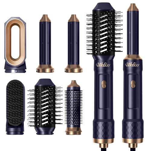 UKLISS Professional 7 i 1 hårtork, fön, luftstyler set med automatisk hårlock, hårtork, uppvärmd fön, plattborste