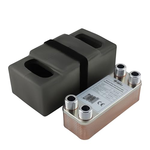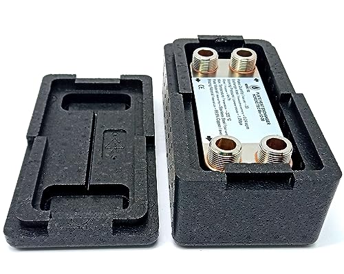 Rostfritt stål plattvärmeväxlare isolering B3-12-20 med 2 x 1/2 och 2 x 3/4 tum anslutning. 45 kW värmare sol (PWT+Iso)