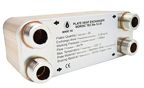 Värmeväxlare av rostfritt stål, plattvärmeväxlare NORDIC Ba-12-30, 65 kW, 30 plattor, 3/4 tum