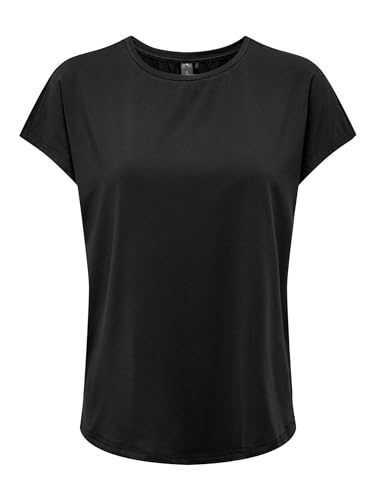 Only Play Kvinnlig T-shirt ledig skuren rund hals fladdermusärm T-shirt, svart, M
