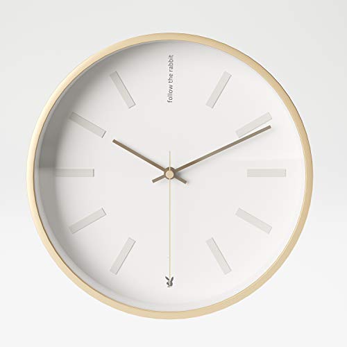 PLAYBOY klocka med gyllene metallram, B/H: 28 x 28 cm, vit urtavla, med BUNNY logo och text "Follow the Rabbit", väggklocka, guld, vit, retro-design