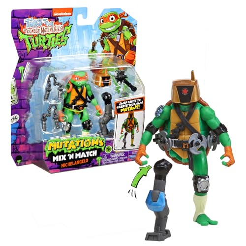 Turtles - Michelangelo Mix and Match Ninja Turtles 12 cm, samlarobjekt, artikulerad och tillbehörsfigur Ninja från Tales of the TMNT-serien, för barn från 4 år