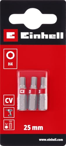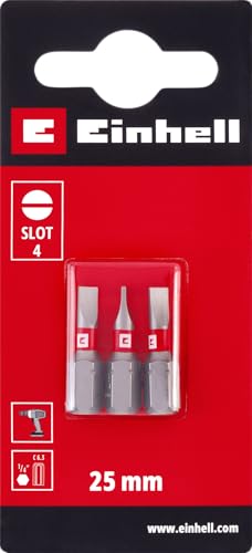 Original Einhell standardbits, 3 delar, 25 mm, hex 4 (krom vanadin, exakt skruvar, bra kontroll, röd färgring, C 6,3 skaft)