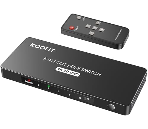 MT-VIKI 4K HDMI Switch 5 in 1 Out 5 Port HDMI 2.0 Switch IR Remote Control HDMI Switch 4K@30Hz 1080P TV PS5 Xbox DVD