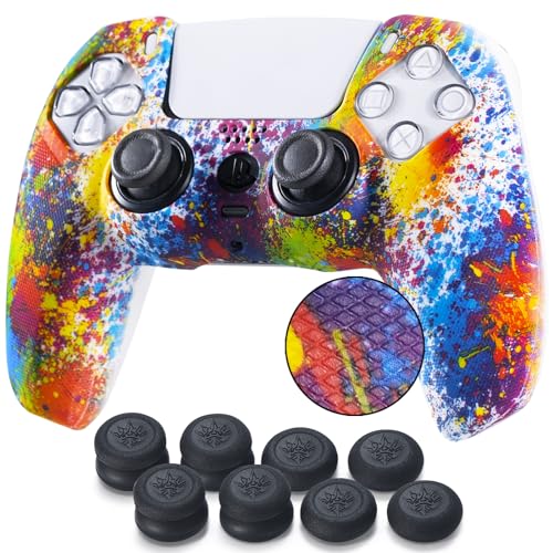 YoRHa Dubbade printring silikongummi anpassa hudskydd för PS5 Dualsense Controller x 1 (spashing färg) med Pro tumgrepp x 10