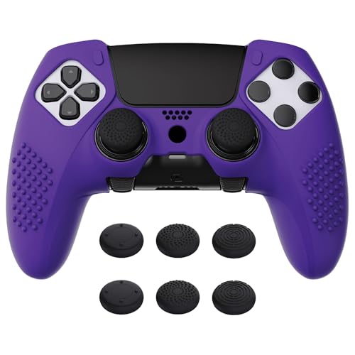 PlayVital Anti-Slip Silicone Cover Case för ps5 Edge Controller,Mjukt Gummiskydd för ps5 Edge Wireless Controller med 6 Tumgrepp-Lila(3D Studded Edition)