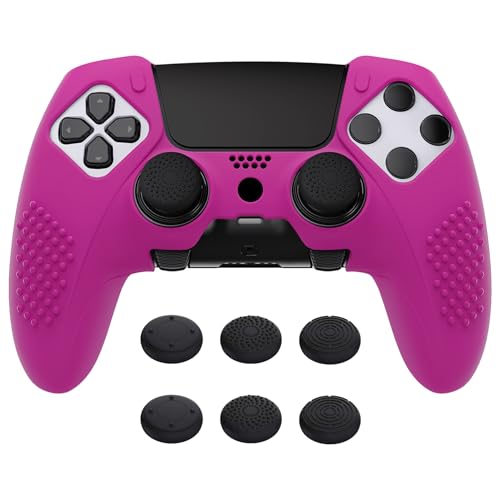 PlayVital Anti-Slip Silicone Cover Case för ps5 Edge Controller,Mjukt Gummiskydd för ps5 Edge Wireless Controller med 6 Tumgrepp-Neon Lila(3D Studded Edition)