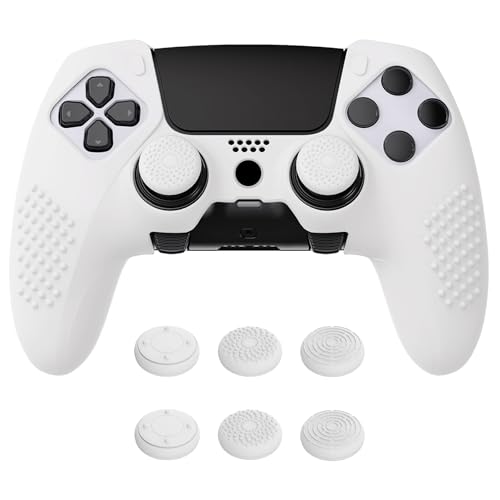 PlayVital Anti-Slip Silicone Cover Case för ps5 Edge Controller,Mjukt Gummiskydd för ps5 Edge Wireless Controller med 6 Tumgrepp-Vit(3D Studded Edition)