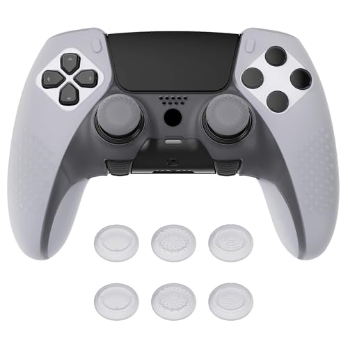 PlayVital Anti-Slip Silicone Cover Case för ps5 Edge Controller,Mjukt Gummiskydd för ps5 Edge Wireless Controller med 6 Tumgrepp-Transparent Vit(3D Studded Edition)