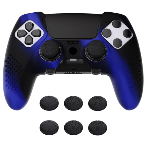 PlayVital Anti-Slip Silicone Cover Case för ps5 Edge Controller,Mjukt Gummiskydd för ps5 Edge Wireless Controller med 6 Tumgrepp-Blå&Svart(3D Studded Edition)