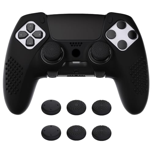 PlayVital Anti-Slip Silicone Cover Case för ps5 Edge Controller,Mjukt Gummiskydd för ps5 Edge Wireless Controller med 6 Tumgrepp-Svart(3D Studded Edition)