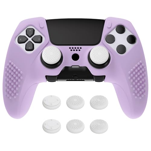 PlayVital Anti-Slip Silicone Cover Case för ps5 Edge Controller,Mjukt Gummiskydd för ps5 Edge Wireless Controller med 6 Tumgrepp-Mauve Lila(3D Studded Edition)