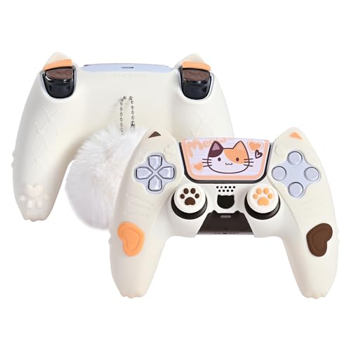 GeekShare silikonskydd för PS5 trådlös handkontroll, PS5-kontrollerskinnset med 2 dubbelgrepp och 2 klistermärken - Calico Cat