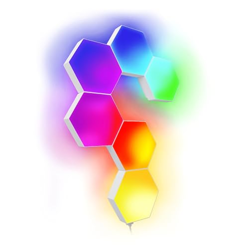 Numskull 6-delad LED-hexagon spelljuspaneler – färgskiftande omgivande belysning via touch, Bluetooth eller fjärrkontroll för Xbox, Playstation, PC, Switch, kompatibilitet med flera plattformar