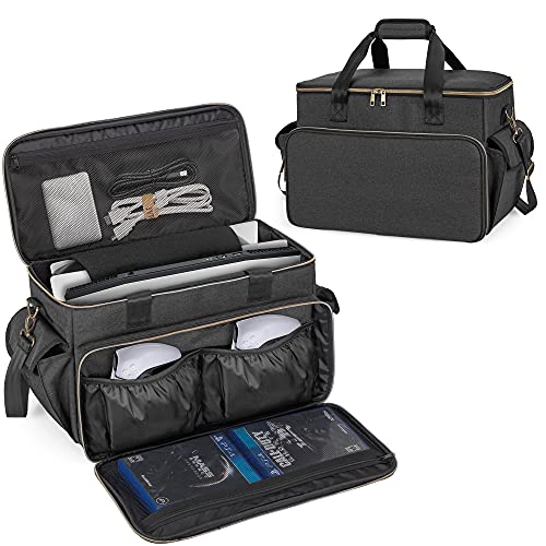 Trunab Gaming Console Resväska Kompatibel med PS5/PS4/Xbox One, Axelförvaringsväska för Playstation 4/5, Bärväska med Flera Fickor för 15,6-tums Bärbar Dator Och Speltillbehör