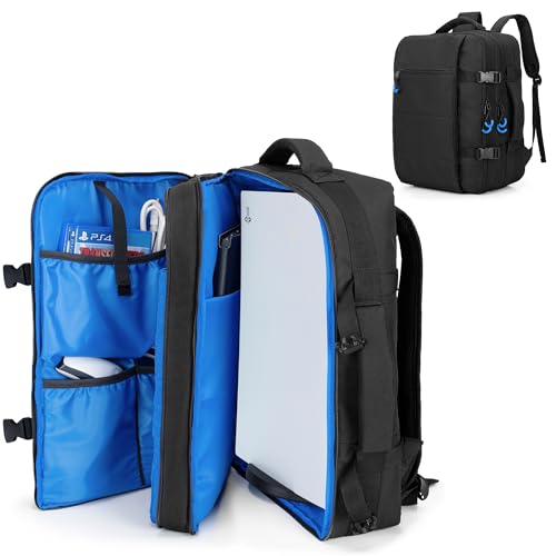 PGmoon ryggsäck kompatibel med Playstation 5-konsol, bärväska lämplig för PS5/PS4-konsol, styrenhet, 15,6 tums bärbar dator, spelskivor (patent design), svart, Medium, Verksamhet