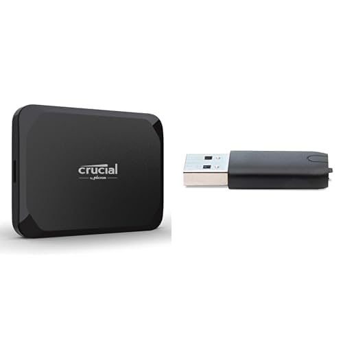 Crucial X9 1TB Bärbar Externa SSD - Upp till 1050MB/s, Fungerar med PlayStation, Xbox, PC, Externa Solid State-diskar, USB-C 3.2 - CT1000X9SSD902 & Crucial USB-C till USB-A adapter - CTUSBCFUSBAMAD
