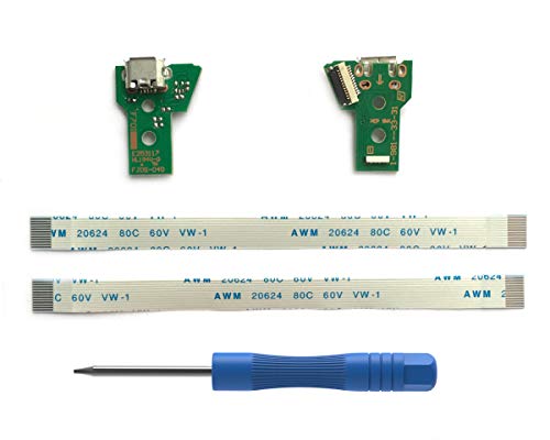 ElecGear 2x JDS-030 Ersättning Laddningsportenhet för PS4 DualShock 4 Controller, Reparera del Micro USB Adapter Laddare Uttagskort Kontakt Modul för PlayStation 4 Kontroller, Flexkabel, Skruvmejsel