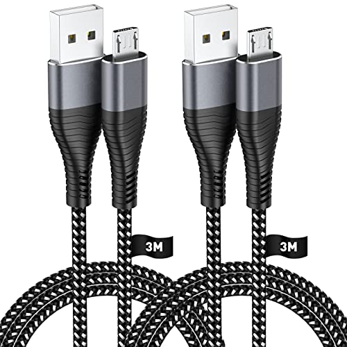 HUNYYN PS4-Kontrollladdningskabel 2-Pack, Extra Lång 3 M Mikro-USB-Laddningssladd Nylonflätad för PlayStation 4/PS4 Slim/Pro, Xbox One/S/Elite/X-Kontroll