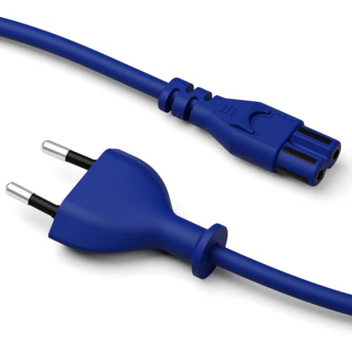 Pedestal Strömkabel 7,5 m (blå) | strömkabel 2-polig – TV-kabel, kompatibel med Playstation och Xbox, euroströmkabel för kalla enheter, TV-kabel med euro 8