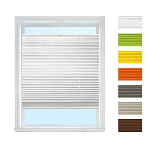 Plissee veckad persienn med klemmfix-klämmor ogenomskinlig persienn, ingen borrning krävs, spännings/vikbar integritet och solskydd för fönster och dörrar, tygmetall, vit, B45 cm x H 150 cm