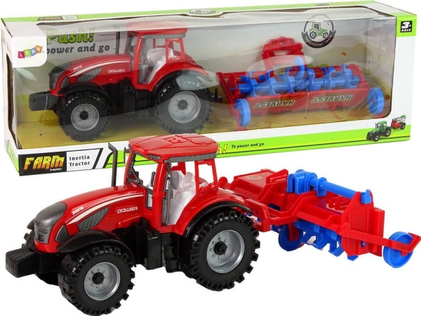 Leantoys Traktor Med Plog Friktionsdrift Röd