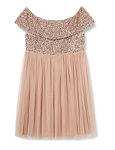 Maya Deluxe Dam frostad rosa bardot utsmyckad midi-klänning brudtärna, Frostad rosa, 46 SE/Plus