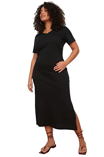 Trendyol kvinnor plus size midi jerseyklänning smal stickad plusstorlek klänning, Svart, XL
