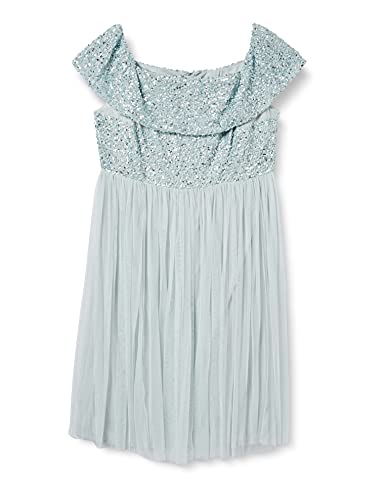 Maya Deluxe Bardot klänning för kvinnor midi utsmyckad hög imperium midja ärmlös tyll för bröllop gäst bal examen brudtärna, Isblå, 48 SE/Plus