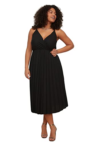 TRENDYOL Dam stora storlekar midi omlottsnitt avslappnad passform tyg plus-size klänning, svart, 46 SE