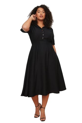 Trendyol Dam plus size midi skater avslappnad vävd plus storlek klänning, Svart, 48/Stor