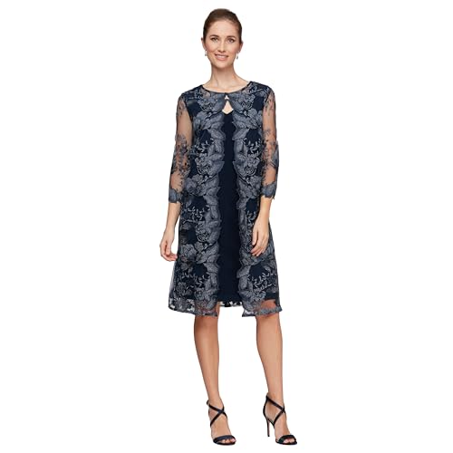 Alex Evenings dam plus size midi rund hals skiftklänning med jacka speciellt tillfälle, Liten marin, 44 SE