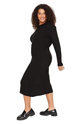Trendyol damtröjklänning passform stickade kläder plus size klänning, svart, 3XL Stor