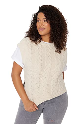 Trendyol kvinnor plus size normal passform basic rund hals stickade kläder plus size tröja, beige, 4XL, BEIgE, 4XL Stor