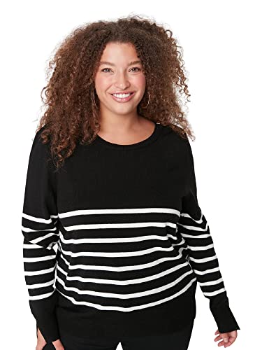 Trendyol Dam avslappnad passform basic rund hals stickade kläder plus size jumper sweatshirt, Svart, XXL