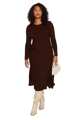 Trendyol kvinnor A-line fitted stickade kläder plus size dress, BRUN, 5XL/Stor